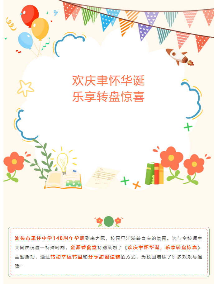 汕头市聿怀中学148周年华诞|金源香转盘送惊喜,甜蜜蛋糕为欢乐加码!